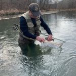 On Monday December 27th, a group consisting of Scott Payne, Jack (Scott’s guest), Don Varner, Will Black, Glenn Haake, Jim Craig, Matt McClure, Harold Bates, Kenny Klimes, Sid Aslin, Tim Klotz, and Dan Staggenborn all hit Montauk for a post-Christmas fishing trip. The day started warm and stayed that way, it was beautiful. As the team spread out in the park for the morning session, Kenny joined up with Harold Bates below the boulder to make Harold an official graduate. With Kenny’s encouragement (heard up and down the stream), it did not take Harold long to put several fish into the net, with a couple more in the afternoon.