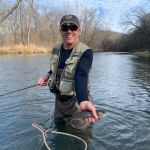 After a lunch of sharing stories and strategies, Glenn, Will and Matt decided to head below the cable, where the fishing was slow, however, each, managed to get a few in the net. The rest of the group once again spread out across the park, finding that the morning crowds had thinned, giving the FATC guys room to work. A few rising fish were caught, using soft hackles, Barr’s emergers, and crackle backs, but most of the fish were caught near the bottom. The flies that seemed to work were – red and black zebra midges, eggs, worms, Dan’s Bennett Springs Killer, psycho prince nymph, orange Perdigons, the hair of the dog, and Scotts “house of pain” otherwise known as the hair of the wife.