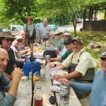 FATC guys eating lunch and sharing mostly sob stories about how challenging the morning was.