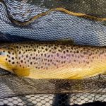 On my second float, I went back to fishing a wet fly. Right away I was fortunate enough to allow a healthy brown trout, which measured 18”, to take the fly, turn his head downriver and hook himself. During this float, I alternated between casting streamers and emergers and didn’t always make the mental transition between the strong hook sets required for the streamer and letting trout hook themselves on the emergers. That cost me several fish that quickly released my emerger if they sensed even the slightest pressure on the line.