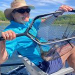 My wife Linda and I got a campspot on the river just down from the dam. It was such a beautiful day she decided to drift with me on the second leg of that day’s float. So I picked her up and after a picnic, we headed on down toward a takeout at the famous resort Gaston’s. It was to be just a pleasure float that afternoon, but I couldn’t resist casting an emerger to more trout striking on the surface just down from the park. The result was she got into the act by netting a couple of more bows I managed to catch. I ended up with 11 that day.