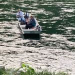 With the low water, I saw guides chumming to interest fish downstream in whatever bait they had clients using with their spinning rods.