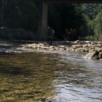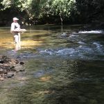 Gary Elliott and Jim Franke came to visit me, Dave Beerbower, for some relaxation in the Blue Ridge Mountains of NC. Of course that included some fishing while the ladies went shopping. We decided to hit Wilson Creek Wilderness Area. This is one of the prettiest rivers in the east. The weather cooperated with a beautiful day, but the fishing started out tough. Finally, with some local information, Dave got on a bridge over the river and spotted fish for Jim and Gary. The catching was on. Though the numbers were not great, we all caught fish and between the three of us, we managed a trifecta. The natural beauty of this place is incredible. Enjoy the pictures.