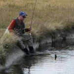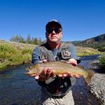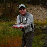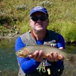 John, Great picture of you setting the hook in the meadow. Looking at Pete’s big brown, are you sure that isn’t a brookie? It looks like he has white tipping on his rear fins.
