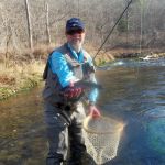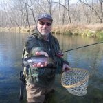 Another graduation trip to Montauk this Monday as six FATC piled into the old green suburban and headed down to Salem, Missouri. Kenny was going to graduate, Paul Schneider and Lou Forbringer, while Jim Craig, Bill Byington and Glenn Haake made the trip with them. It was a beautiful day and as most times in the winter catch and release season, the park was pretty much all ours. Both Lou and Paul got their “graduation” trout before lunch which took the pressure off of them for the rest of the afternoon. Kenny, Lou and Paul fished above the dam until lunch while the other three headed upstream to check out the fishing at the beginning of the park. As it has in the past the fishing was ok in the morning hours, slowed down during the mid-day and picked up near the end of the day when the sun was setting. After lunch everyone fished some where in the fly fishing only area. Many of you that have fished Montauk park this year know the river has changed a lot. Your favorite holes may be gone but now is the time to find new ones – it’s a different river. The best flies of the day were woolybuggers, scuds, cerise worms, midges, and soft hackles. Everyone put a fish or more in the net and it was a fun day for all.