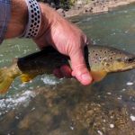 It was a long but eventually productive day yesterday down Waterton Canyon! Rode the bike in and was hitting the water by 0830 as the sun was just starting to illuminate most of the water (and the rams were still feeding roadside!). Unfortunately, the fish didn’t become “illuminated” until I got my first 12” brown at 1140 while tactical nymphing…he grabbed onto a #20-22 trailing black zebra midge. At 1220 I found another 12” brownie and he took the top, large tungsten beadhead tac nymph with green flash. I saw lots of insect activity everywhere. I went all day long (hoppers, black flies, midges, dragon flies etc.), with seemingly endless tiny midge hatches, but no risers……until 5:30p, when I rode back downstream to a long calm stretch of water where I finally saw some topwater dimpling breaking the surface…