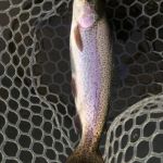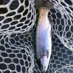 From 5:30p (1st cast!) til 7:30p I landed 6 12” rainbows and lost almost as many! They were a lot of fun and very eager to jump on ANY of the 3 flies I had on…a dry, light cahill or royal coachman on top, dry adult caddis as #2, or the #18-20 black smokejumper emerger as a trailer!