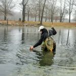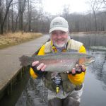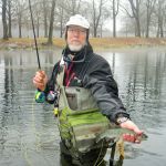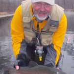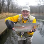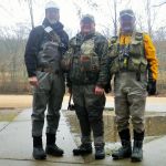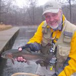Some fishing trips are just better than others. This was one of those trips.  Bill Byington, Jim Craig and I (Kenny Klimes) braved the misty, cold day for a trip to Maramec Spring park.  A leisure start time (7:15am) found just a few other fly fishers in the park when we arrived.  We decided to stay in the park and search for some big trout that we heard were roaming the shallows.  The fast water at the beginning of the park was taken so we worked our way down to the straight stretch where we found some big fish on the last FATC trip to Maramec.  The water was “boiling” in this area so small soft hackles followed by tiny Griffith’s gnats.