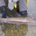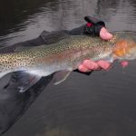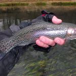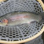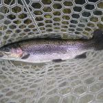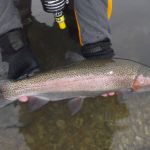 The strikes were hard and fast in the morning.  To my surprise big fish were roaming through this area and I mean BIG.  My first two fish were monsters.  Both fish measured over 21 inches and both caught on a size 20 griffith’s gnat.  That’s two fish, back to back, that puts me in the 20 – 20 club.  A trout greater than 20 inches on a fly that is size 20 or smaller. WOW. My first time having that happen.  Yes, I was breathing hard and my hands were shaking. The other rainbows that were in the 15 – 17 inch range paled in comparison.